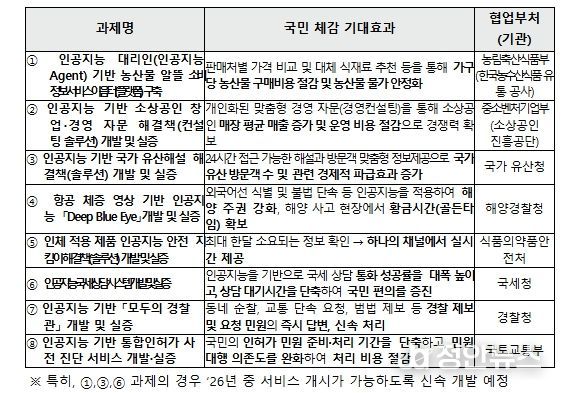 정안뉴스 안정주 기자 | 과학기술정보통신부는 '인공지능 민생 10대 과제(프로젝트)'를 본격 추진하기 위해, 과제(프로젝트) 중 8개 과제의 사업자 선정을 위한 공모를 2월 11일부터 개시한다고 밝혔다.