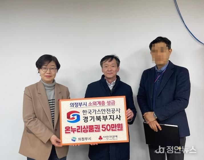 정안뉴스 안정주 기자 | 의정부시는 2월 11일 한국가스안전공사 경기북부지사가 장암종합사회복지관에 온누리상품권(1만 원권 50매)을 지정 기탁하며 ‘100일간 사랑릴레이 배턴 잇기’에 동참했다고 밝혔다.