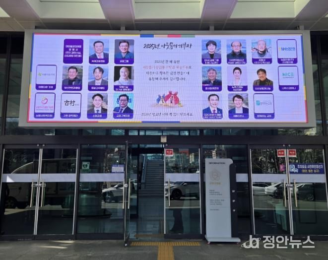 정안뉴스 황정혜 기자 | 부산 금정구는 2025년 한 해 동안 지역사회에 따듯한 나눔을 실천한 후원자들에게 감사의 마음을 전하고자 2월 한 달간 구청사 1층 전광판에 감사 메시지를 게시했다.