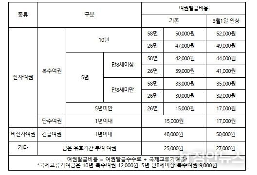 정안뉴스 안정주 기자 | 2026년 3월 1일부터 여권발급수수료가 2천원 인상된다.