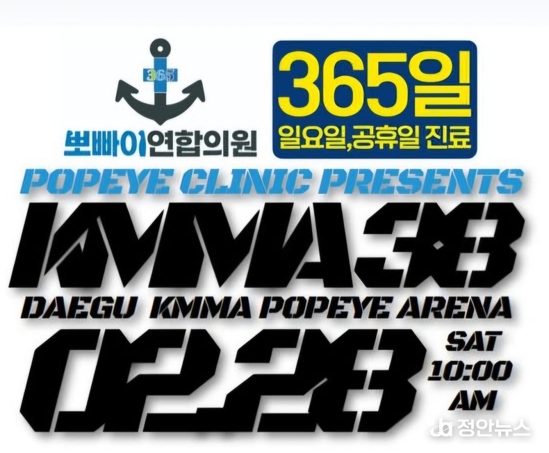 이러한 KMMA는, 오는 2월 28일 오전 10시부터 대구광역시 중구 뽀빠이아레나에서는 ‘뽀빠이연합의원 : KMMA38 대구’ 대회를 연다.