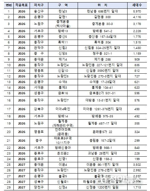 서울시는 지난해 6.27·10.15 부동산 대책 등 규제 기조 속에서 민간 정비사업의 위축 가능성을 진단하고, 공급 가뭄 해소를 위해 향후 3년간 총 8만 5천 호 규모의 ‘핵심공급 전략사업’을 가동해 조기 착공에 박차를 가한다.