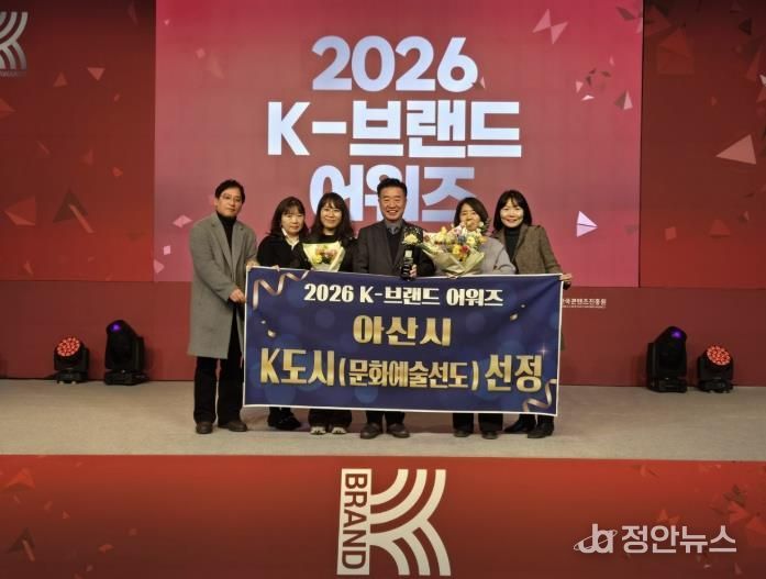 정안뉴스 황도연 기자 | 아산시가 문화예술 분야 정책 성과를 인정받으며 지난 25일 서울 더플라자호텔에서 열린 ‘2026 K-Brand Awards’에서 ‘K-도시(문화예술선도 도시)’ 부문에 선정됐다.