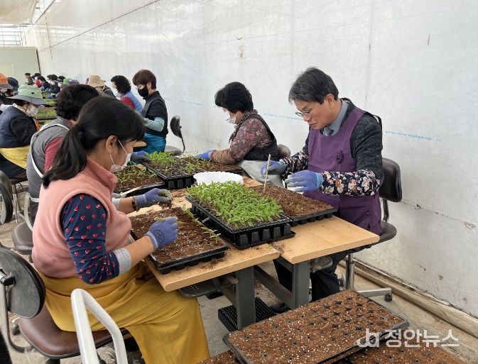 정안뉴스 황도연 기자 | 입춘이 지나 대지에 온기가 돌기 시작한 요즘, 청양군농업기술센터 다목적육묘장은 벌써 싱그러운 초록빛으로 가득하다.