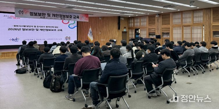 정안뉴스 황도연 기자 | 논산시는 26일 시청 회의실에서 정보시스템 담당자와 유지보수 참여 인력 105명을 대상으로 ‘정보보안 및 개인정보보호 교육’을 실시했다.