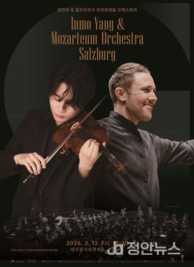 정안뉴스 안정주 기자 | 세계 주요 오케스트라와 지휘자, 정상급 연주자들의 무대를 선보여온 대구콘서트하우스 명연주시리즈가 2026년의 시작을 알린다. 그 첫 무대인 '양인모&잘츠부르크 모차르테움 오케스트라'가 3월 13일 금요일 오후 7시 30분, 대구콘서트하우스 그랜드홀에서 개최된다.