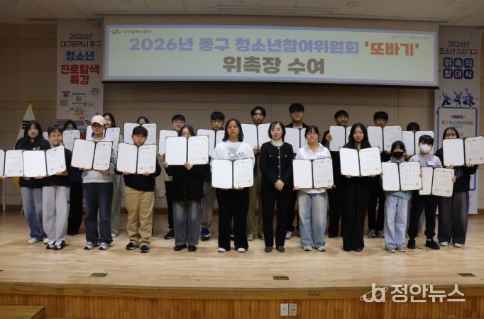 정안뉴스 안정주 기자 | 동구청소년문화의집 아름드리는 지난 2월 28일, 2026년 청소년참여기구 위촉식과 청소년동아리 연합 발대식을 열었다.