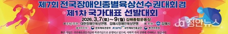 정안뉴스 김재홍 기자 | 대한장애인육상연맹(회장 박흥식)과 김해시장애인육상연맹(회장 조석제)이 주최·주관하고, 김해시가 후원하는 ‘제7회 전국장애인종별육상선수권대회 겸 제1차 국가대표 선발대회’가 오는 3월 7일부터 9일까지 김해종합운동장에서 개최된다.