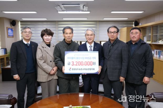 정안뉴스 김재홍 기자 | 경상남도미래교육재단(이사장 박종훈)은 5일 교육감 집무실에서 경남농촌교육농장협의회(회장 김종환)로부터 ‘아이좋아 통장사업’ 후원금 320만 원을 전달받았다고 밝혔다.