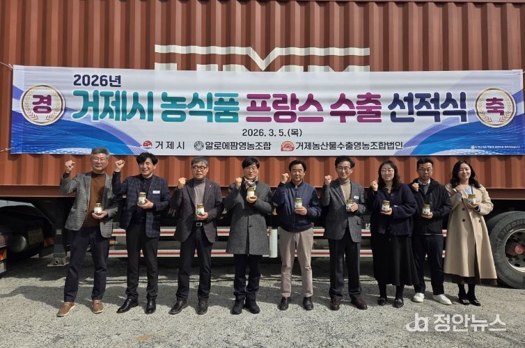 정안뉴스 김재홍 기자 | 거제시는 지난 5일 거제면에 위치한 알로에팜영농조합법인에서 거제시 농식품 프랑스 수출 선적식을 개최했다고 밝혔다. 이번 선적식은 지난 1월에 열린 프랑스 수출 상담회 및 MOU 체결의 후속 조치로 이루어진 첫 번째 성과로, 거제시와 수출업체들이 지속적인 협력을 통해 이루어낸 결실이다.