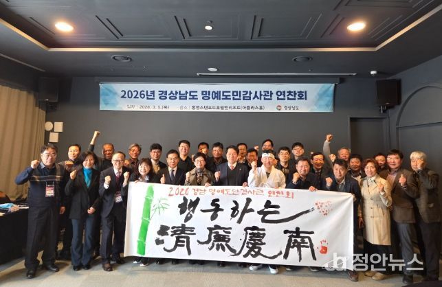 정안뉴스 김재홍 기자 | 경상남도는 5일 통영에서 ‘2026년 경상남도 명예도민감사관 연찬회’를 개최하고 도민과 함께하는 청렴경남 실천 의지를 다졌다.