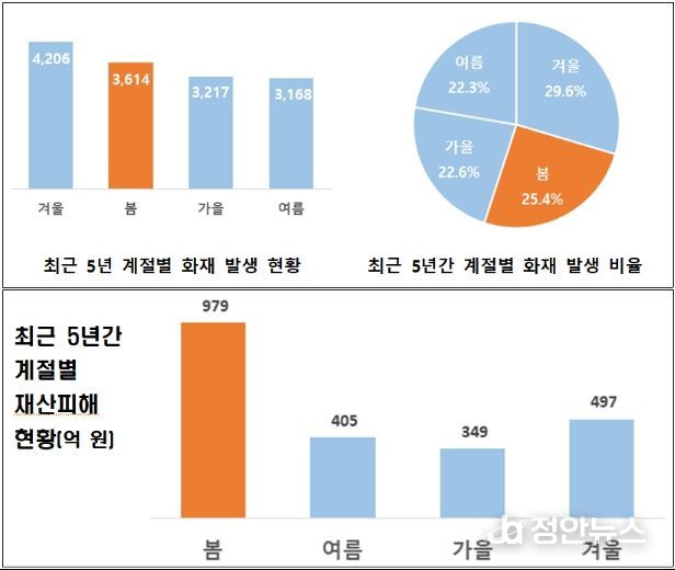 인명 피해 또한 적지 않았다. 같은 기간 화재로 인해 208명의 사상자가 발생해, 겨울철(221명)에 이어 두 번째로 높은 수치를 기록했다.