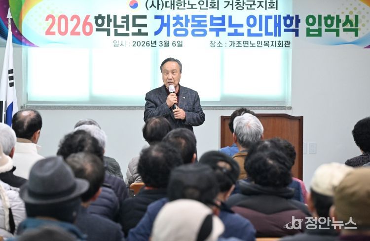 정안뉴스 김재홍 기자 | (사)대한노인회 거창군지회(지회장 강창남)는 6일, 지역 어르신들의 활기찬 노후와 평생학습 기회 확대를 위한 ‘2026학년도 노인대학 입학식’을 개최했다.