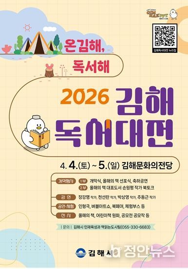 정안뉴스 김재홍 기자 | 김해시는 오는 4월 4일과 5일 양일간 김해문화의전당 일원에서 ‘책읽는도시 김해’를 대표하는 책 축제인 ‘2026 김해독서대전’을 개최한다고 16일 밝혔다.