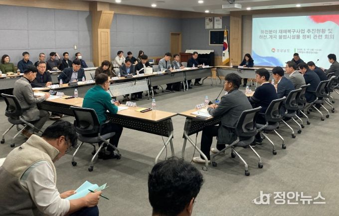 정안뉴스 김재홍 기자 | 경상남도는 17일 서부청사 중강당회의실에서 지난해 7월 집중호우에 따른 하천 재해복구사업 추진상황 점검 회의를 개최했다고 밝혔다.