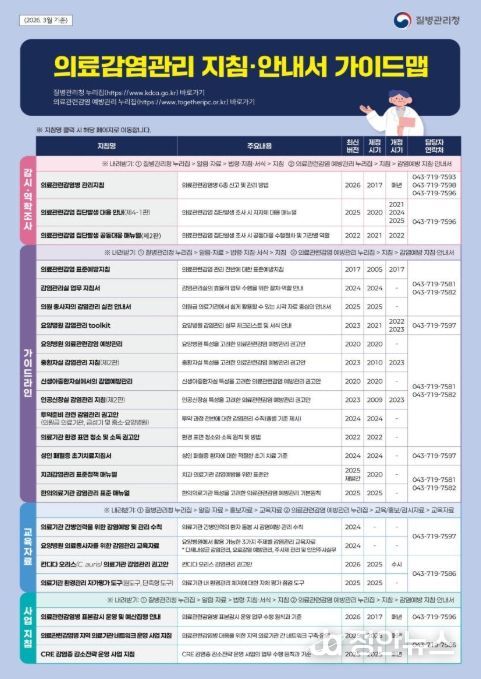 정안뉴스 안정주 기자 | 질병관리청은 의료기관 현장에서 활용할 수 있는 '의료감염관리 지침·안내서 가이드맵'을 제작·배포한다.