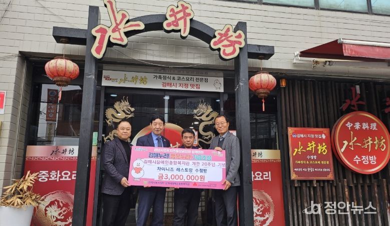 정안뉴스 김재홍 기자 | (재)김해시복지재단 김해시장애인종합복지관은 개관 20주년을 맞아 차이니즈레스토랑 수정방(대표 서종수)으로부터 300만원 상당의 중화요리 특식을 후원 받았다고 밝혔다.