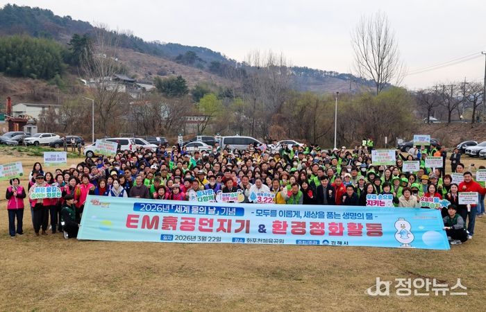 정안뉴스 김재홍 기자 | 김해시는 제34회 세계 물의 날인 지난 22일 화포천 체육공원 일원에서 수질 정화, 생태계 복원을 위한 ‘EM 흙공 던지기와 환경정화 활동’ 행사를 개최했다고 23일 밝혔다.