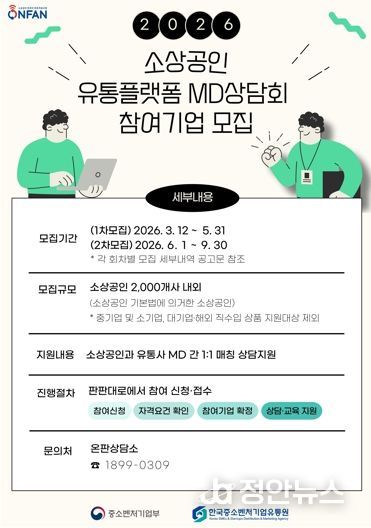 정안뉴스 안정주 기자 | 광주광역시는 지역 소상공인의 온라인 판로 확대와 경쟁력 강화를 위해 ‘2026 소상공인 유통플랫폼 상품기획자(MD) 상담회’ 참가업체 200곳을 오는 5월31일까지 모집한다.