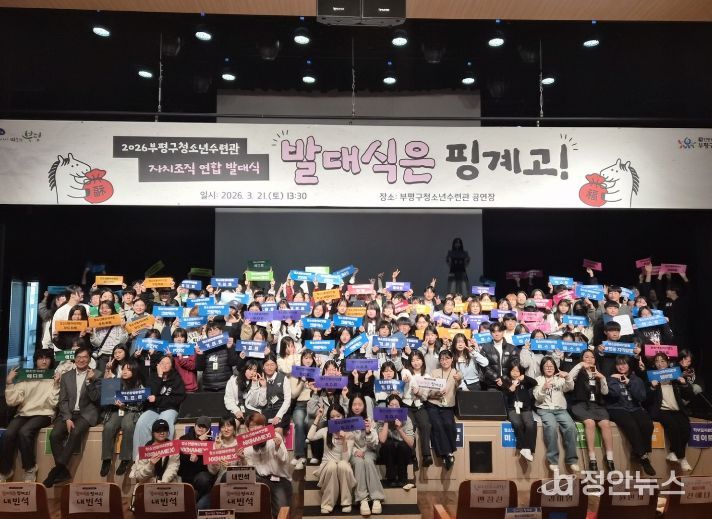 정안뉴스 안정주 기자 | 부평구청소년수련관은 지난 21일 오후 1시 30분 수련관 4층 공연장에서 2026년 자치조직 연합 발대식 ‘발대식은 핑계고!’를 성황리에 개최했다.