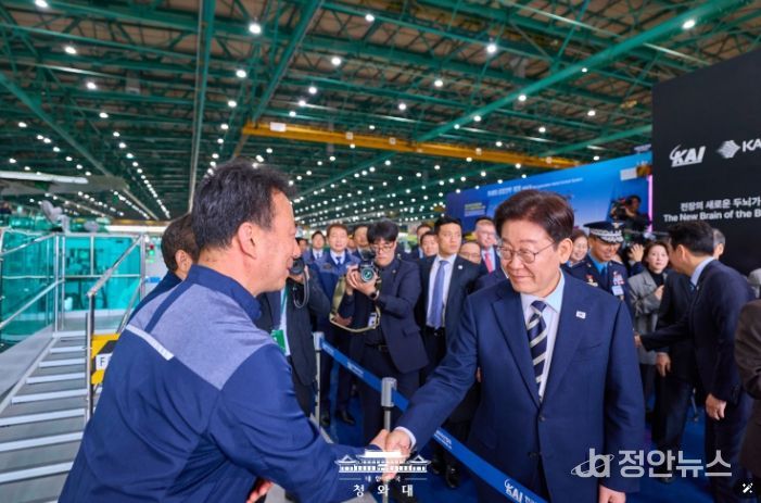 이재명 대통령은 "생산 현장을 둘러보며 공정 시작부터 비행 운용까지 전 과정이 철저하게 체계화돼 있음을 확인했다"며 연구부터 개발, 조립 등에 매진하는 모든 관계자들의 노고에 깊은 감사를 표하고 현장 작업자들을 격려했다.