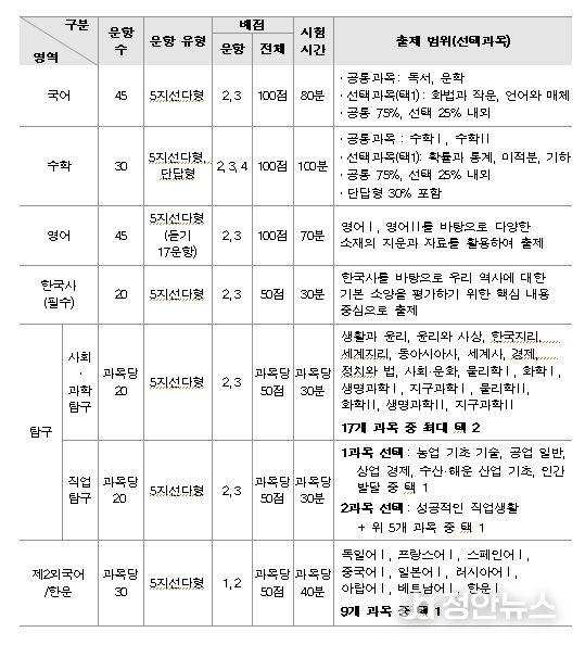 5. 국어와 영어 영역은 출제 범위를 바탕으로 다양한 소재의 지문과 자료를 활용하여 출제함.
