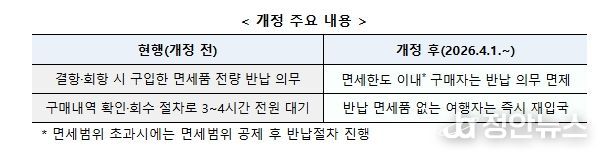 관세청은 지난 2월 말 면세품 회수 예외 근거가 「관세법 시행령」에 마련됨에 따라, 세부 이행 절차를 담은 「여행자 및 승무원 휴대품 통관에 관한 고시」 개정을 완료하고 4월 1일부터 본격 시행한다고 밝혔다.