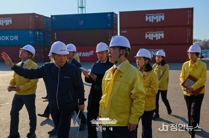 정안뉴스 안정주 기자 | 이재명 대통령은 8일 오후, 의왕 소재 내륙컨테이너기지(ICD)를 방문하여 고유가 상황으로 어려움을 겪고 있는 화물운송 및 물류업계 종사자들과 간담회를 가졌다.