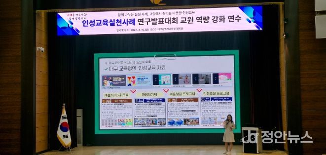 정안뉴스 안정주 기자 | 대구시교육청은 지난 4월 10일, 시교육청 행복관에서 교원 및 기관 업무 담당자 100여 명을 대상으로 ‘2026학년도 인성교육실천사례 연구발표대회 교원역량강화 연수’를 개최했다.