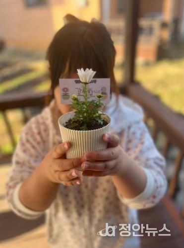 아이들은 “감사합니다”, “고맙습니다”, “건강하세요”, “힘내세요” 등의 문구를 직접 작성한 작은 피켓을 화분에 담았고, 경비원‧선생님‧어르신 등 주변 감사한 분들에게 화분을 전달했다.