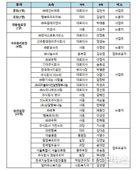 산업포장의 주인공은 효성ITX의 자회사형 표준사업장 행복두드리미 주식회사에서 사내카페 매장관리자로 일하고 있는 김금재 대리이다. 김금재 대리는 중증 청각장애인으로, 10년간 끈기와 성실함을 가지고 현재 매장경영·인력 관리 관리자로 성장하여 여성 장애인의 성공적 롤모델을 제시했다.