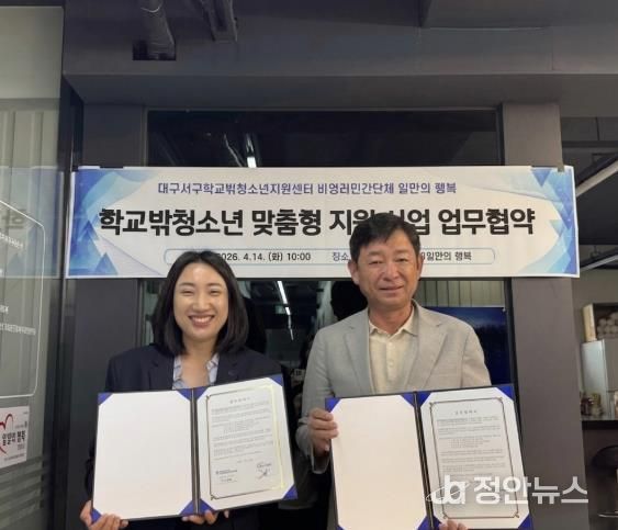 정안뉴스 안정주 기자 | 대구 서구학교밖청소년지원센터는 지난 4월 14일 비영리민간단체 ‘일만의 행복’과 학교밖청소년 지원을 위한 업무협약을 체결했다.