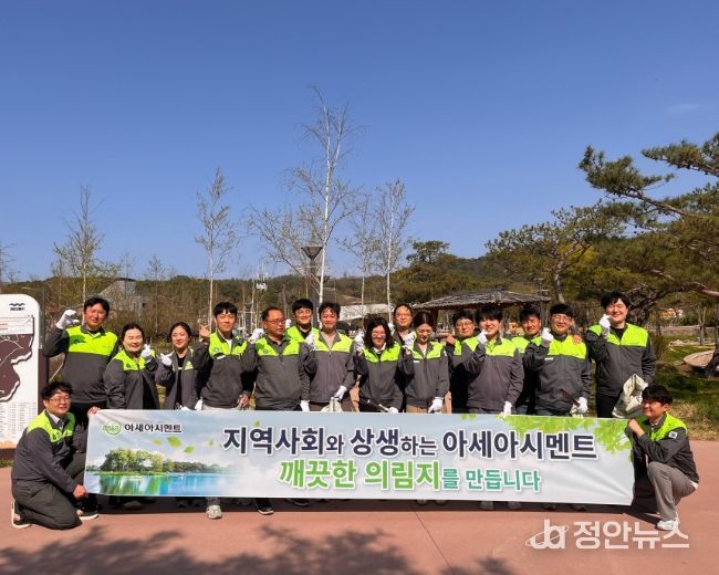 정안뉴스 안정주 기자 | 아세아시멘트 제천공장 임직원들은 4월 15일 제천 의림지 일원에서 환경정화 활동 캠페인을 실시했다. 이날 행사에는 약 20명의 임직원이 참여해 지역 대표 관광명소인 의림지의 깨끗한 환경 조성에 힘을 보탰다.