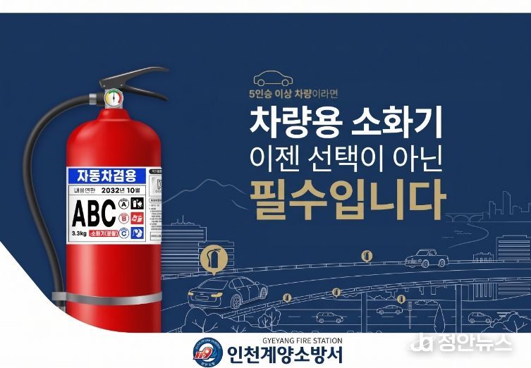 정안뉴스 안정주 기자 | 계양소방서(서장 송태철)는 완연한 봄을 맞아 주말 나들이 등 장거리 차량 이동이 증가함에 따라, 차량 화재 사고에 대비해 '차량용 소화기' 비치 및 상태 점검을 당부한다고 17일 밝혔다.