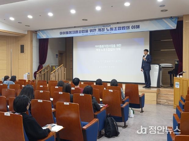 정안뉴스 안정주 기자 | 경기도아이돌봄광역지원센터는 20일 경기도인재개발원 다산홀에서 도내 31개 시군 아이돌봄서비스 제공기관 종사자와 관련 공무원을 대상으로 ‘2026년 노동조합법 이해 교육’을 개최했다.