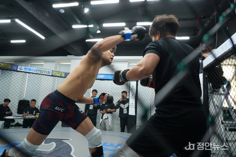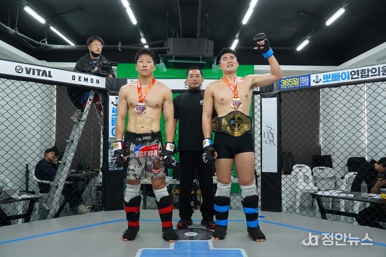 23번째 경기에서는 'KMMA 세미프로 웰터급 챔피언결정전'이 펼쳐졌다. 김민성(팀혼본관·19)은 1라운드 1분 46초 만에 상대였던 황인제(30ㆍ김대환MMA)를 TKO로 꺾었다.