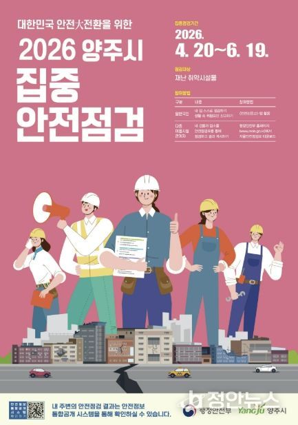 정안뉴스 안정주 기자 | 시민 안전 사각지대 해소를 위해 경기 양주시가 ‘2026년 집중 안전 점검’을 추진한다.