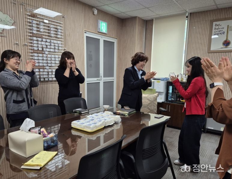 면장실에서 열린 이날 행사에는 전 직원이 참석하여 새로운 출발을 응원했다. 선배 공무원들은 정성껏 준비한 떡을 나누며 정규임용을 축하하는 한편, 청렴한 공직자의 자세와 책임감에 대해 깊이 있는 대화를 나누며 조직 내 청렴 의식을 고취했다.