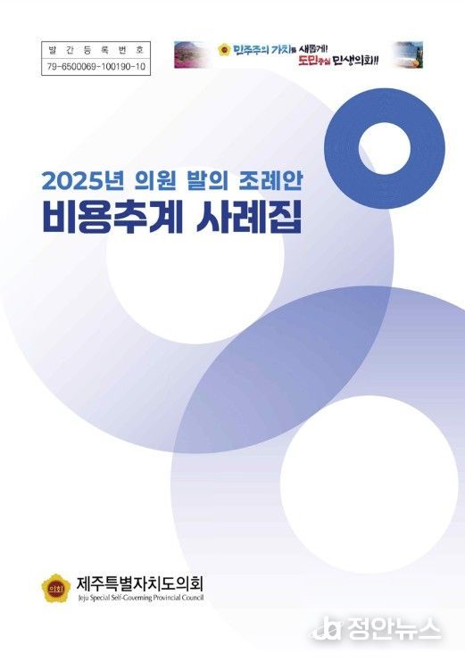 정안뉴스 안정주 기자 | 제주특별자치도의회는 지방재정의 건전성을 도모하고 도민의 알 권리를 증진하기 위해 '2025년 비용추계 사례집'을 발간하고, 이를 누리집에 공개했다고 21일 밝혔다.