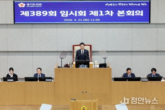 정안뉴스 안정주 기자 | 경기도의회 김진경(더민주·시흥3) 의장은 21일 제389회 임시회 본회의에서 “지금은 민생을 기준으로 판단하고 책임 있게 대응해야 할 시기”라며 위기 대응에 의회가 적극 나설 것을 강조했다.