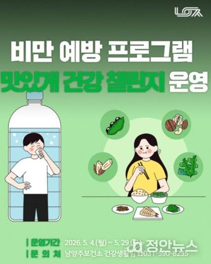 정안뉴스 안정주 기자 | 남양주시는 남양주보건소가 5월 한 달간 실천형 비대면 비만 예방 프로그램 ‘맛있게 건강 챌린지’를 운영한다고 21일 밝혔다.