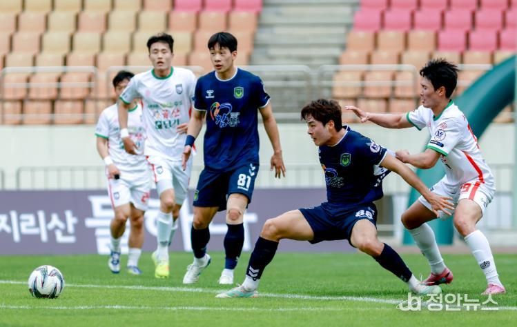 높은 점유율을 바탕으로 측면을 활용한 공격을 전개했으나, 금산인삼FC의 수비에 막혀 전반은 득점 없이 종료됐다.