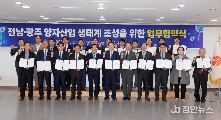 광주광역시와 전라남도는 21일 시청 중회의실에서 대학, 연구기관, 기업 등 23개 기관이 참여하는 ‘광주·전남 양자산업 생태계 조성을 위한 업무협약식’을 개최했다.