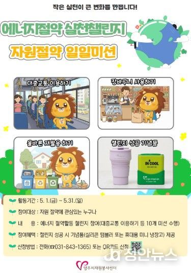 이정주 양주시자원봉사센터장은 “자원안보 위기속에서 이번 챌린지를 통해 생활 속 작은 실천이 에너지 절약과 자원 보호로 이어질 수 있다는 인식이 확산되길 기대한다”며 “이번 캠페인 활동에 많은 관심과 참여를 바란다”고 말했다