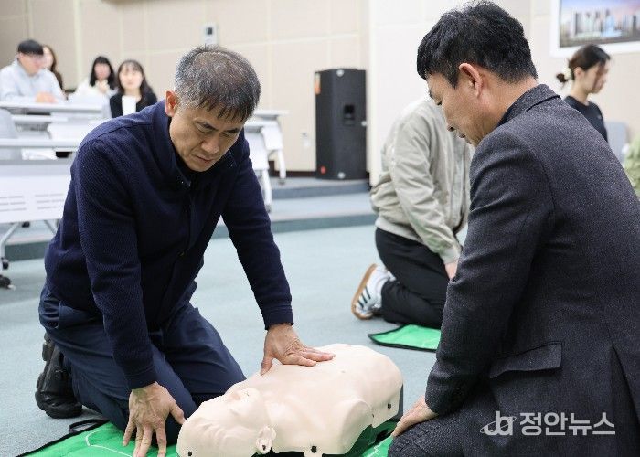정안뉴스 안정주 기자 | 용인도시공사가 현장 중심의 응급대응 역량 강화를 위해 자동심장충격기(AED) 관리책임자를 대상으로 한 심폐소생술(CPR) 교육을 21일 실시했다.