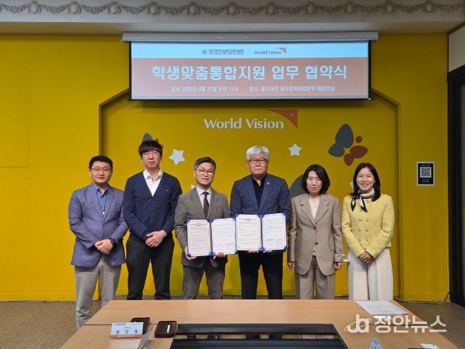 정안뉴스 안정주 기자 | 대구남부교육지원청은 4월 21일 월드비전 대구경북사업본부와 교육취약계층 위기아동 및 가족돌봄청소년 지원을 위한 업무협약(MOU)을 체결한다.