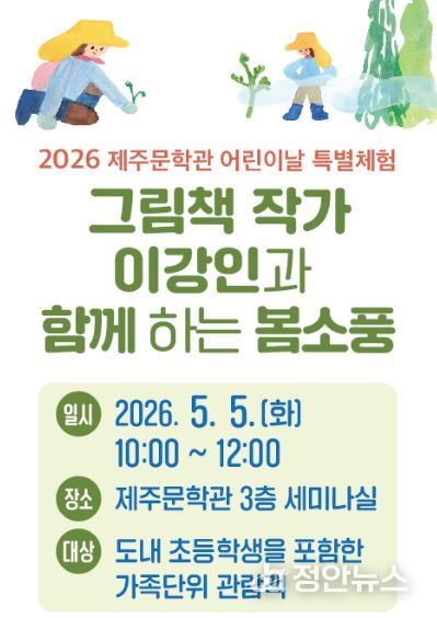 정안뉴스 안정주 기자 | 제주특별자치도 제주문학관은 오는 5월 5일 어린이날을 맞아 가족 단위 관람객을 위한 특별 체험 프로그램 ‘이강인 작가와 함께하는 봄소풍’을 운영한다.