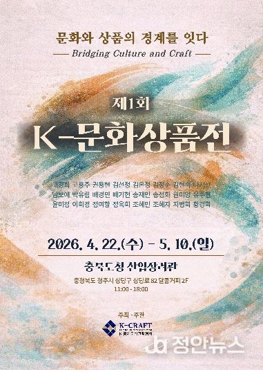 정안뉴스 안정주 기자 | K-공예문화관광협회(KCTA)가 주최주관하는 제1회 K-문화상품전이 오는 4월 22일부터 5월 10일까지 청주에서 열린다.