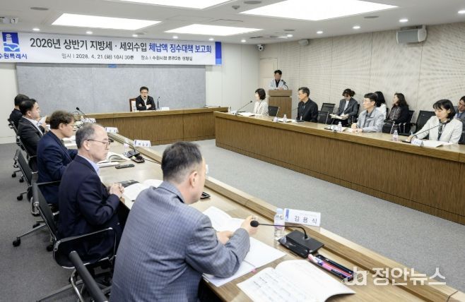 정안뉴스 안정주 기자 | 수원특례시는 21일 시청 상황실에서 김현수 제1부시장 주재로 상반기 징수대책보고회를 열고, 징수 부서별 징수목표액과 징수 상황을 점검했다.