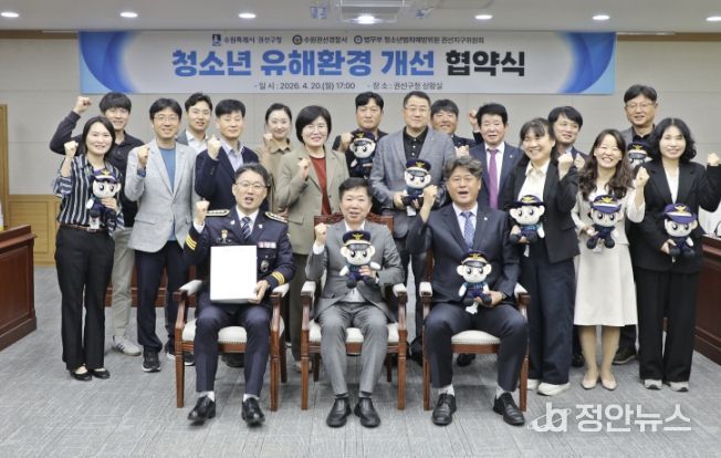 정안뉴스 안정주 기자 | 수원시 권선구는 지난 20일, 수원권선경찰서, 법무부 청소년 범죄예방위원 권선지구위원회와 함께 청소년 유해환경 개선을 위한 업무협약을 체결하고, '아름드리 동행' 장학금 전달식을 개최했다.
